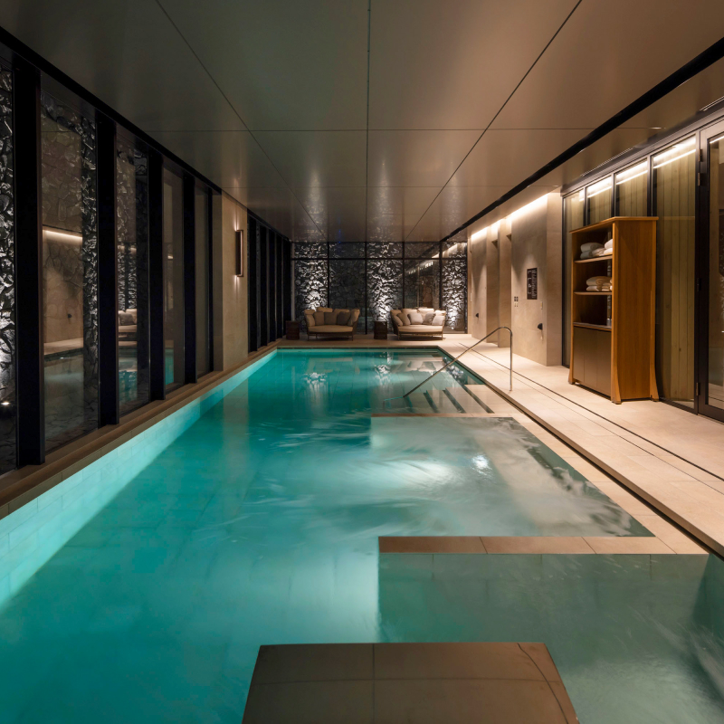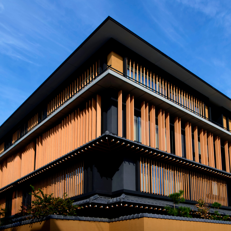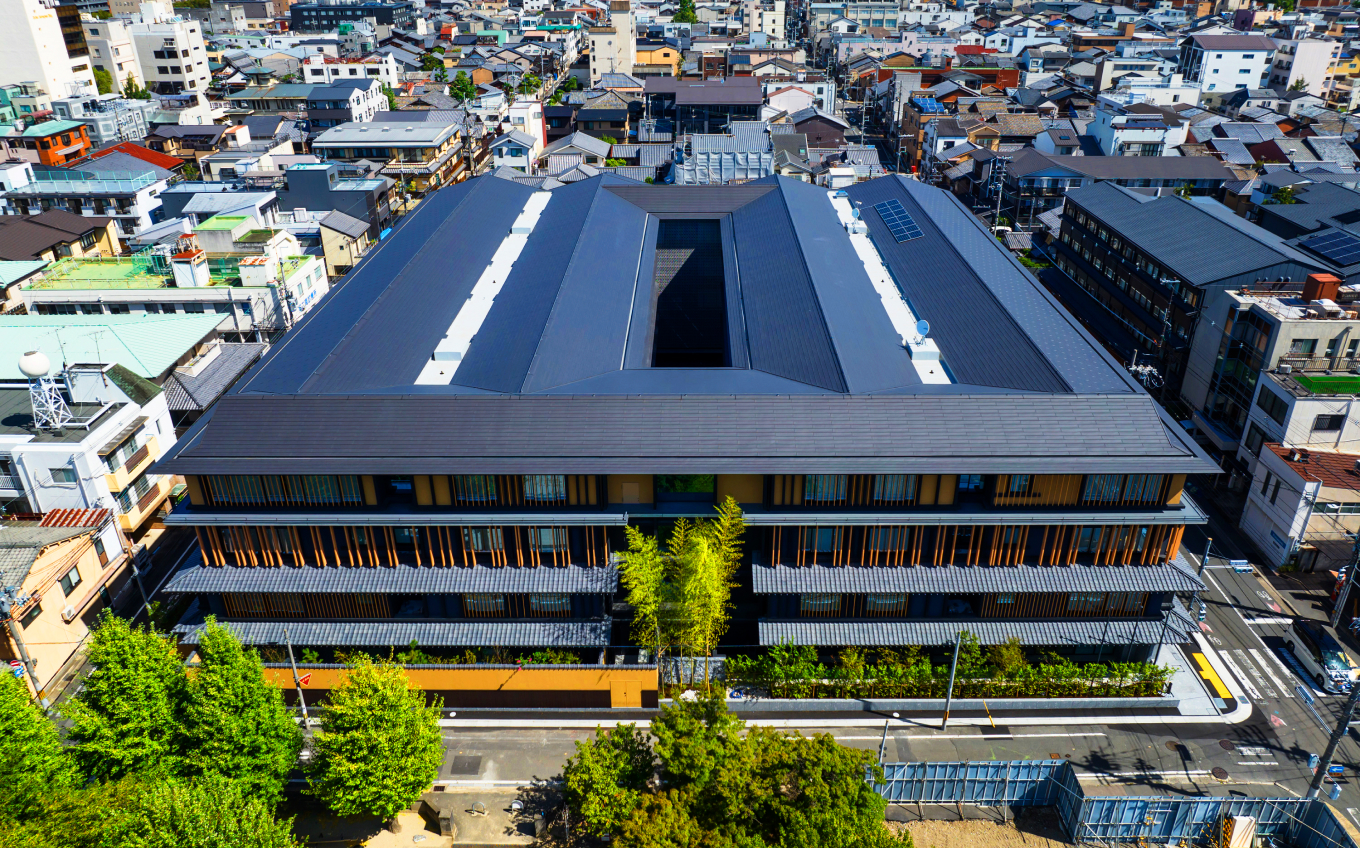 難しかったのは、求められる要素と規制の多さとの兼ね合いです。15mの高さ制限、3階以上の階のセットバックなど、京都の市街地ならではの諸条件のなかで、地域コミュニティの拠点とラグジュアリーホテルを同時に成立させなければならない。レストランやスパ、プール、ジムといった共用部分が通常のホテルよりも多く、容積率をギリギリまで使ってなんとかそのボリュームを収めています。