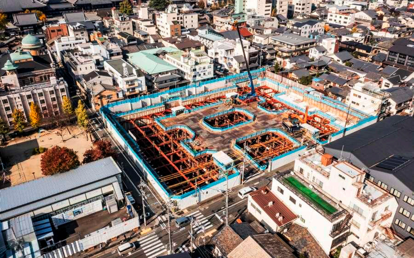 住宅や名所旧跡がひしめく市街地で、作業ヤードがとれなかったことも工事のハードルを上げる一因でした。車両の搬出搬入は東側のバス通りからしかできず、その出入りが地域の方々のご迷惑にならないよう、敷地内で工事が完結する施工計画を立てる必要もありました。現場として最初にみんなで確認をしたのは、工事中の地域の方々の負担を意識して進めよう、ということ。振動騒音計の数字を開示し、隣接する公園の清掃に参加させていただくなど、日々、近隣のみなさんと顔を合わせる中で、「どうですか?」と感触を聞く。ご意見があればその部分の仮設の整備を見直す。感覚で言うと、通常の5割増し以上の手間がかかったと思います。
