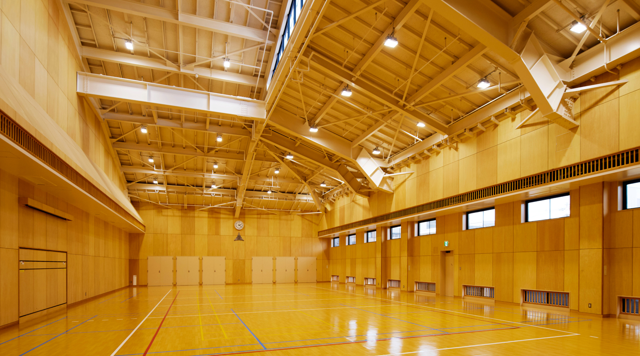 もちろん、運動場としてもより良く、気持ち良く使っていただけるものを目指しました。地域の方々から「竣工後にも残してほしい」と言われたもののひとつに、バレーボールができる環境、というのがありまして、講堂ではボールが天井に当たることもあったようですが、新設した屋内運動場は天井を高くし、採光窓も設けるなど明るく開放的な空間を戸田建設さんに実現していただきました。早速バレーボールやバドミントンなどの活動が再開されており、喜んで使っていただけているのではないかと思います。