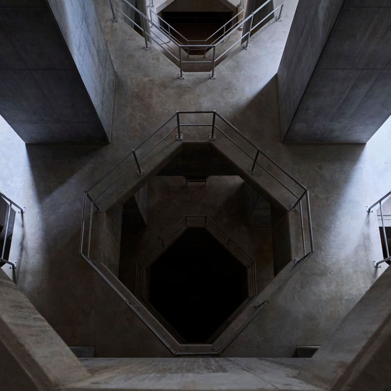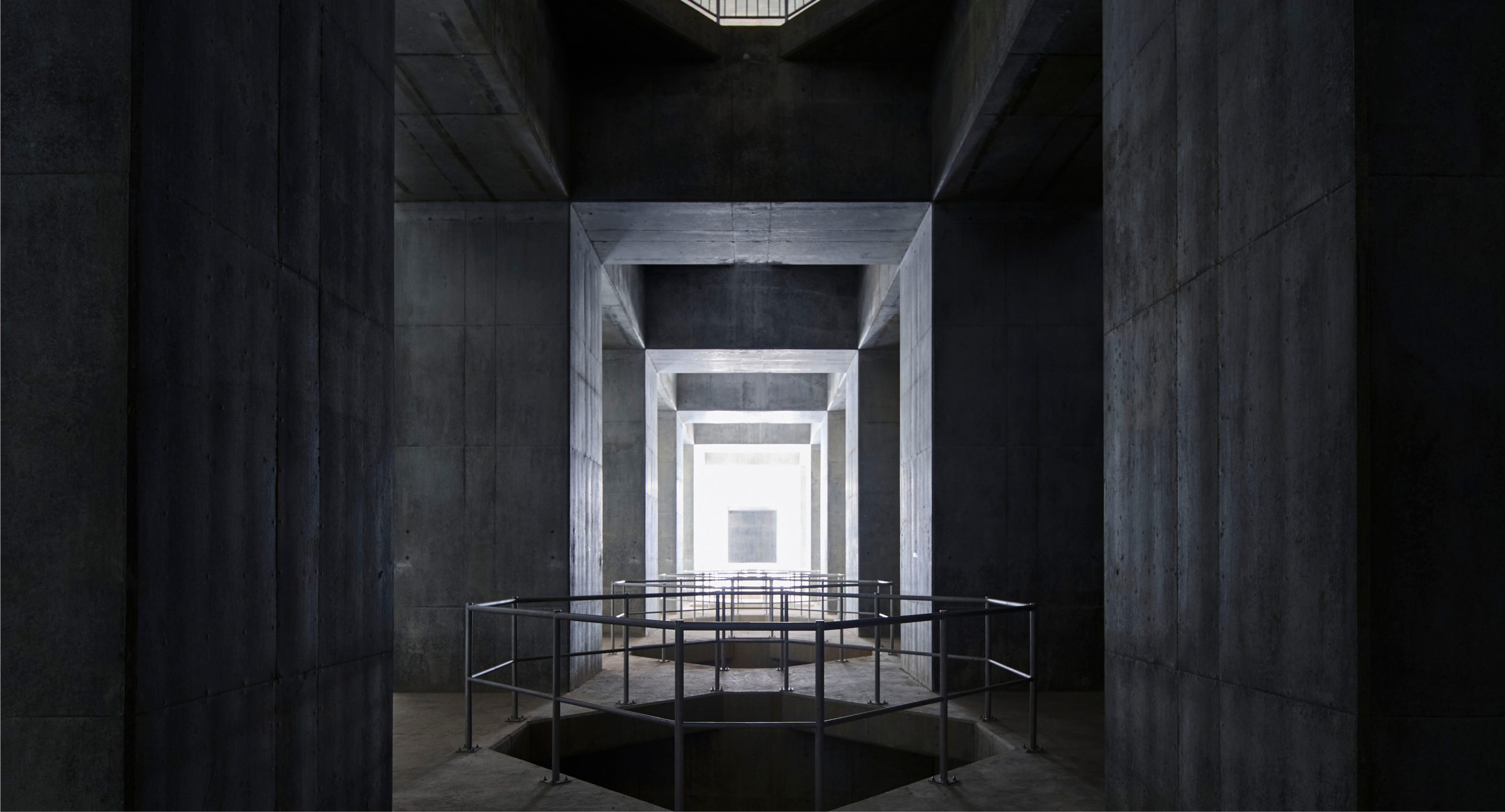 函体(ケーソン)最深部から見上げた様子。内部は4層になっている