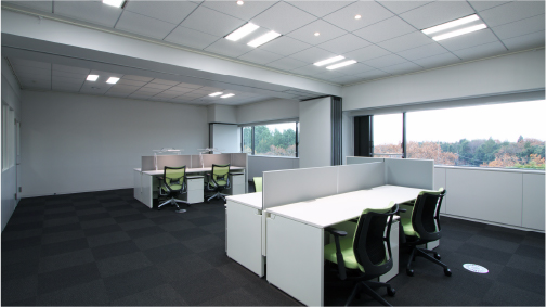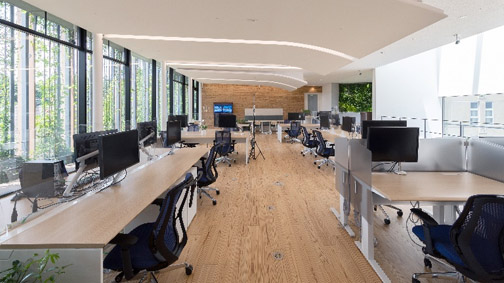 社員の執務スペースでありながら、省エネルギーのみならず新しい働き⽅に対応した室内環境の構築や、カーボンマイナスを実現するための様々な取り組みを実践しています。