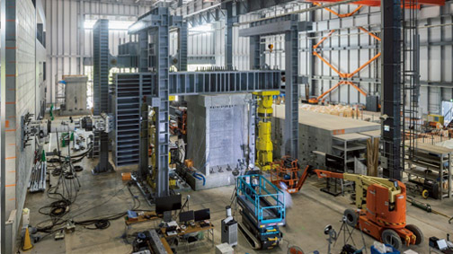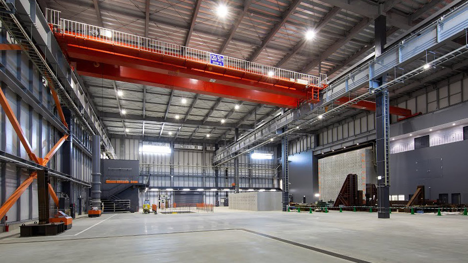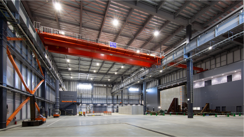 構造や施工に関する研究開発を行うための設備・機能を集約した大空間の多機能実験施設です。