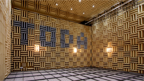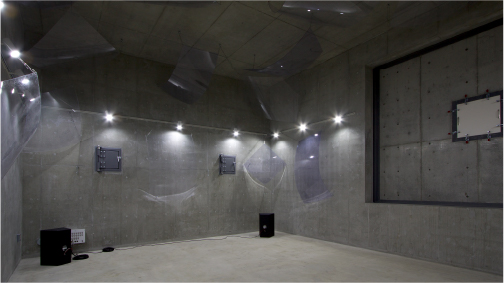 音響実験棟では、音に関する様々な研究を行っています。主な施設として、国内最大級の無響室をはじめ、残響室や、床衝撃音の研究開発を行うための箱型実験室があります。