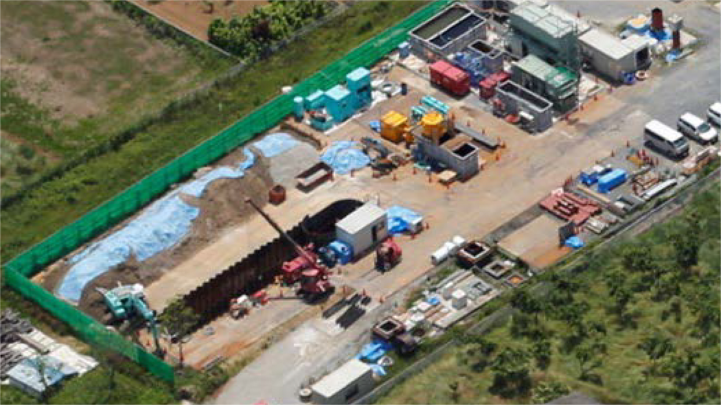 屋外実験場は、開発した施工技術を実際に使用し、その効果を確認するための実験フィールドです。建築工事における躯体構築技術や建物解体技術、土木工事におけるシールド施工技術やトンネル施工技術などを、実際の作業所と同じ環境で検証しています。